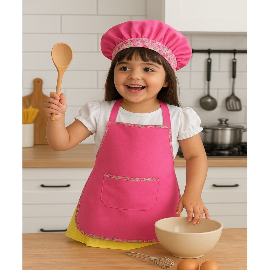 Kit Avental e Touca Infantil Menina Escolar Oxford Multiuso