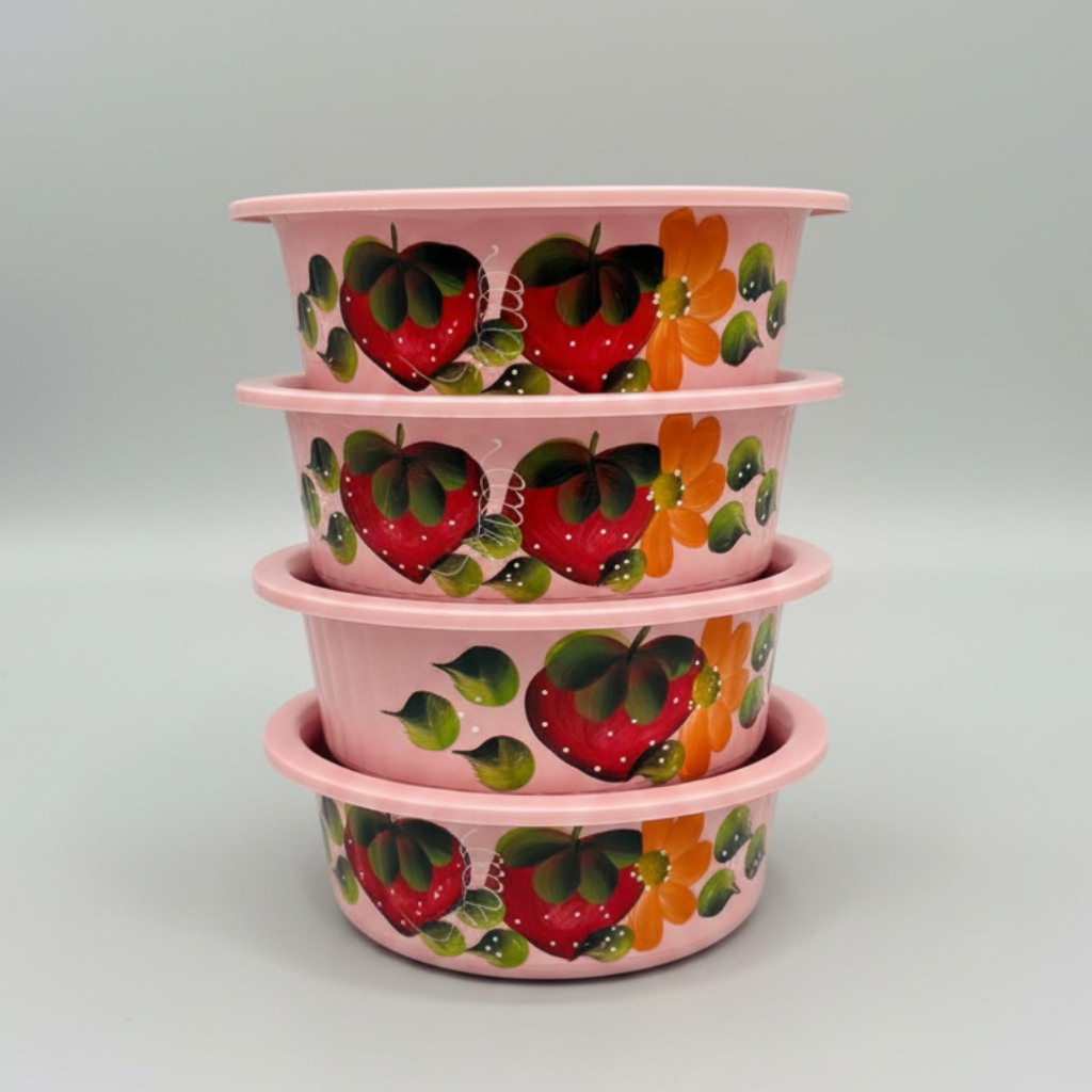 🌸 Kit de Bacias "Doce Lar" - 4 Tamanhos em Plástico Resistente! Garanta já o seu conjunto exclusivo de 4 bacias ovais em tamanhos graduados, feitas em plástico resistente e na cor rosa, com uma encantadora pintura artesanal de morangos e flores. ✅ Durabilidade e Praticidade: Ideal para todas as suas necessidades na cozinha, lavanderia ou organização. ✅ Decoração Única: Um toque rústico e vibrante que alegra qualquer ambiente. ✅ 4 Tamanhos Diferentes: Perfeito para atender a diversas demandas, do pequeno ao grande. 📦 Entregamos para todo o Brasil!