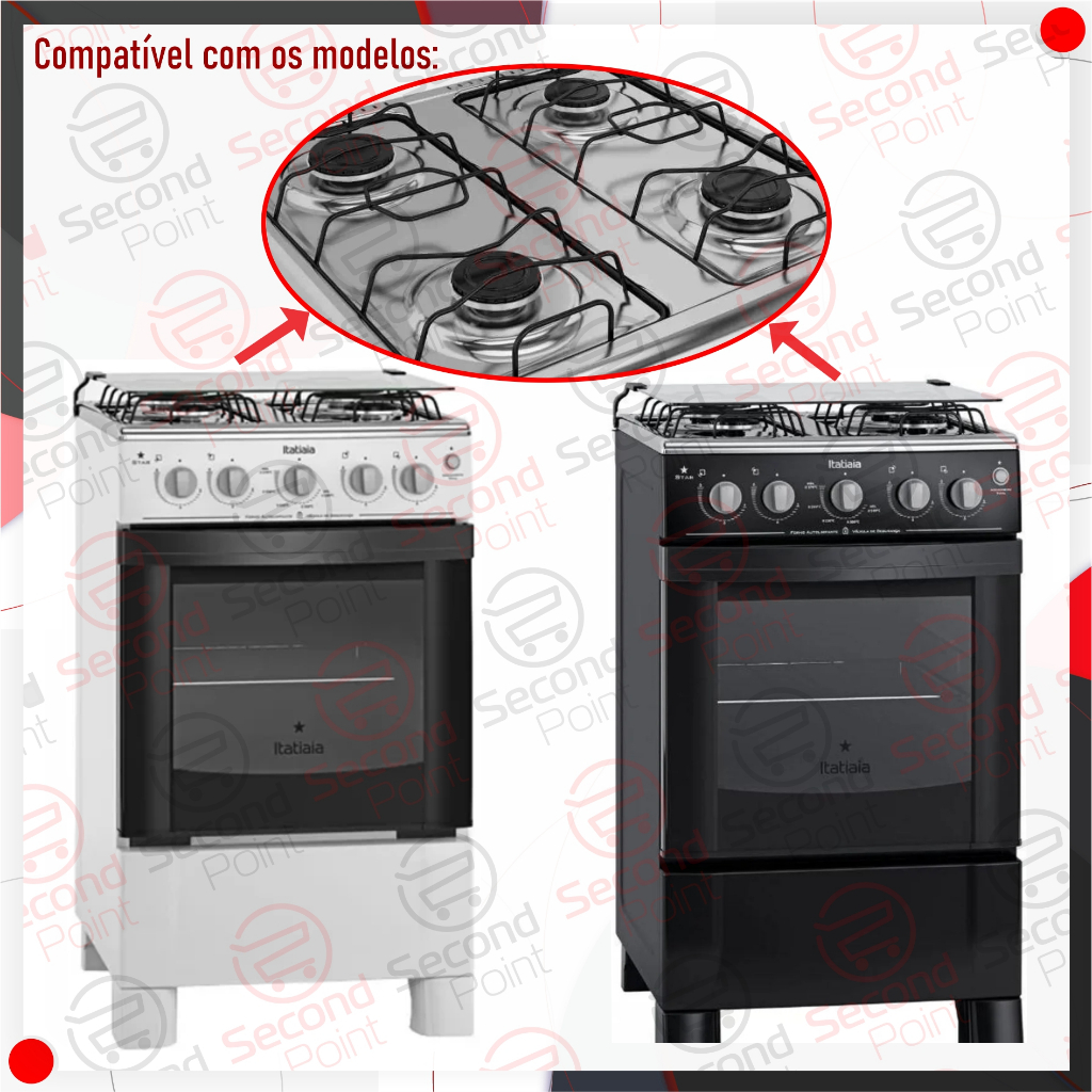 Esse anúncio contém: - 2 (dois) Bacia Queimador para fogão Itatiaia / Braslar PEQUENO (7 cm) - 2 (dois) Espalhador Tampa para fogão Itatiaia / Braslar PEQUENO (6,5 cm) - 2 (dois) Bacia Queimador para fogão Itatiaia / Braslar GRANDE (8 cm) - 2 (dois) Espalhador Tampa para fogão Itatiaia / Braslar GRANDE (7,5 cm) Compatível com 4 bocas: - Itatiaia Star - Itatiaia Clean Aluminio - Braslar Sirius - Braslar Sirius Plus - Braslar New Sirius VEJA A SEGUNDA FOTO DO ANÚNCIO E COMPARE AS MEDIDAS COM O SEU ATUAL Nota fiscal eletrônica (NF-e): Para a segurança do comprador, em TODAS as vendas é emitido NF-e, você terá acesso a ela nos detalhes de sua compra. Pós-venda: Se tiver algum problema com seu produto, favor entrar em contato conosco via chat, esse acesso fica nos detalhes da compra, temos uma equipe especializada para atendê-los prontamente. Garantia/Devolução: A plataforma garante a segurança referente a garantia e estorno do dinheiro pago, se o pedido estiver dentro de todas as diretrizes previamente aceitas e realizadas dentro do prazo estabelecido. Algumas das fotografias contidas neste anúncio são obras intelectuais, protegidas pela Lei 9610/98, artigo 7, inciso VII. O uso ou reprodução das mesmas deve ser aprovada por quem detém os direitos de uso reservado. - SECOND POINT COMÉRCIO