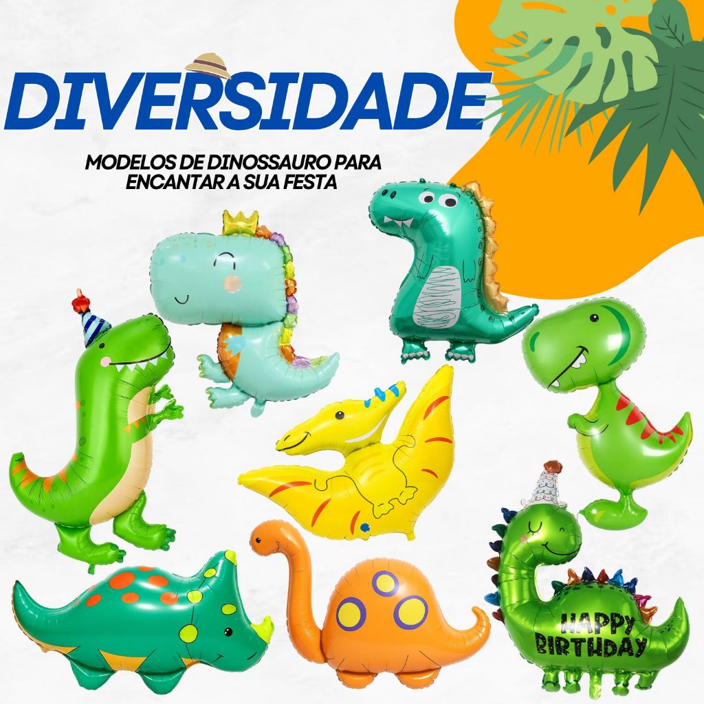 Kit Balão Dinossauro 4D Gigante Metalizado Baby Premium Sortidos 100cm - LAJ Variedades