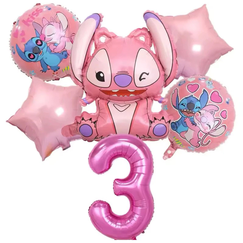 Kit BALÃO FESTA Metalizado Personagem ANGEL Stitch ROSA com Número