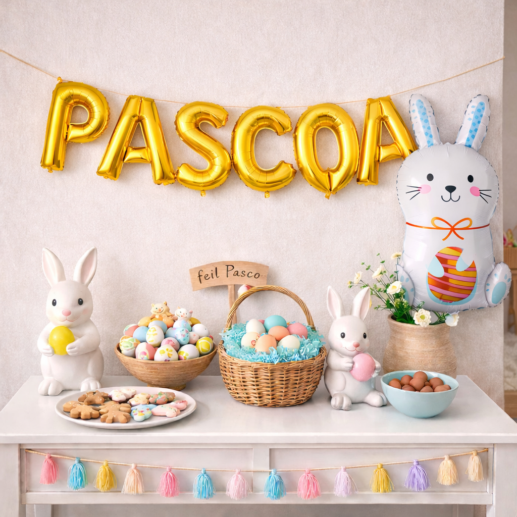 Kit Balão Metalizado PASCOA Letra Palavra Frase + Cenoura