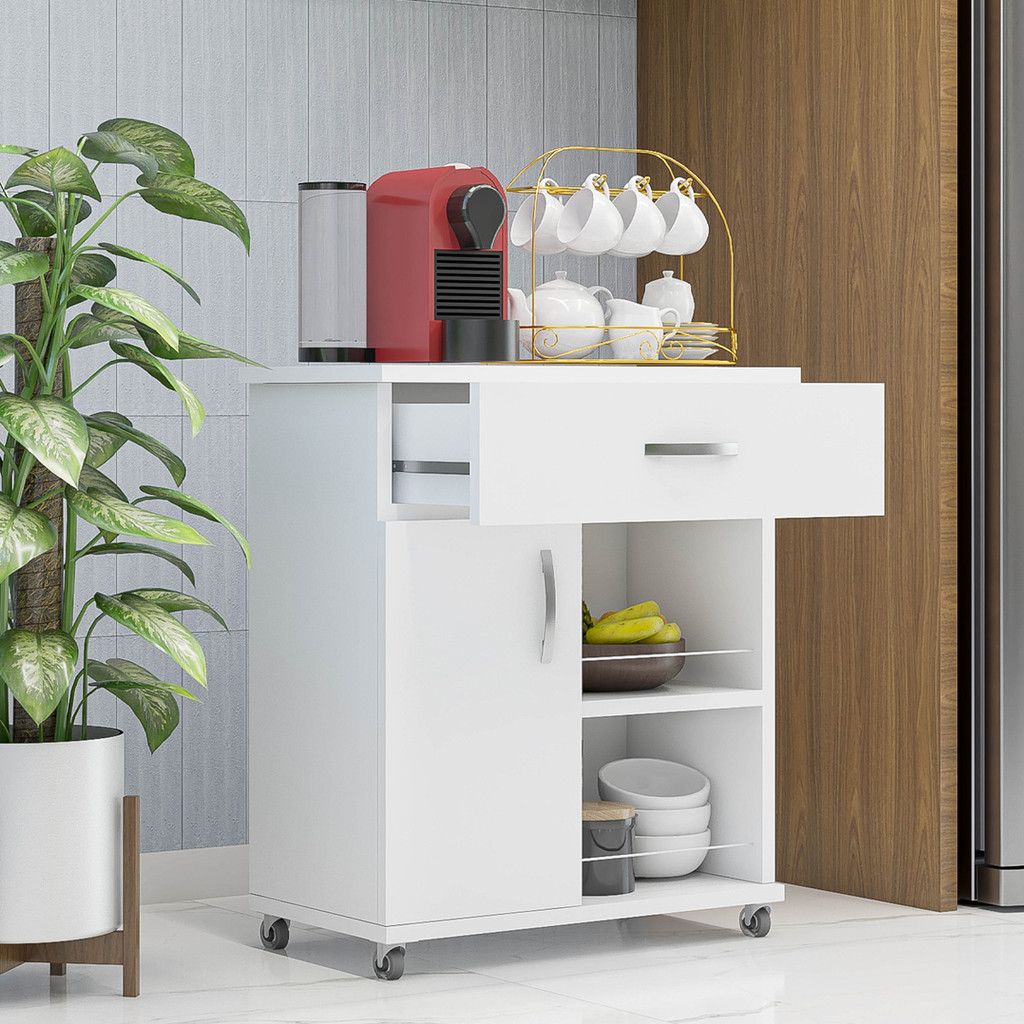 Kit Balcão Com 1 Porta 1 Gaveta para Microondas + Fruteira 3 Prateleiras com Rodinhas