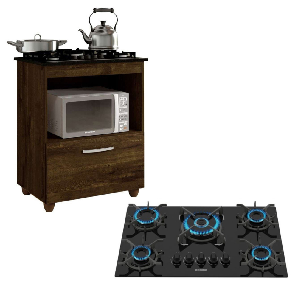 Kit Balcão Cooktop Itatiaia 1 Porta com Fogão 5 Bocas Itacook Premium