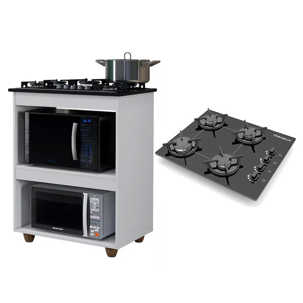 Kit Balcão para Cooktop Cozinha Kaiki Turim com Fogão Cooktop Chef 4 Bocas Ultra Chama Preto