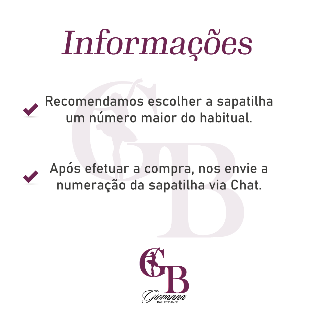 Kit de Ballet Completo para deixar sua bailarina ainda mais linda! O kit é composto por 6 itens 1 Collant Meia Manga em Suplex 1 Saia de Cós em helanca Light 1 Meia-calça fio 40 1 Sapatilha sintética 1 Rede para coque 1 Faixa para Cabeça Descrição do Produto: Collant em Suplex disponível nos tamanhos: Nº02 >>>> Para Crianças 1 à 2 anos Nº04 >>>> Para Crianças 3 à 4 anos Nº06 >>>> Para Crianças 5 à 6 anos Nº08 >>>> Para Crianças 7 à 8 Anos Nº10 >>>> Para Crianças 9 à 10 Anos Nº12 >>>> Para Crianças 11 à 12 Anos Saia de Cós em Helanca Light infantil: P DE 1 A 4 ANOS M DE 5 A 8 ANOS G DE 9 A 12 ANOS Sapatilhas: tamanhos 20 ao 38 **Recomendamos que compre 1 número maior do que a criança calça ** Meia Calça Fio 40 c/pé. Tamanhos: MODELO REF. IDADE TAMANHO (infantil) MEIA CALÇA BALLET FIO 40 OO Sapato 23-26 MEIA CALÇA BALLET FIO 40 0 Sapato 27-30 MEIA CALÇA BALLET FIO 40 PP Sapato 31-34 ***APÓS EFETUAR A COMPRA, ENVIE UMA MENSAGEM COM A NUMERAÇÃO DA SAPATILHA ***