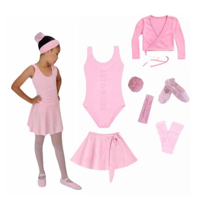 Kit Ballet Infantil 7 itens/ uniforme para dança completo *COM CASACO* (ROSA) - Saia de Transpassar e Collant Regata