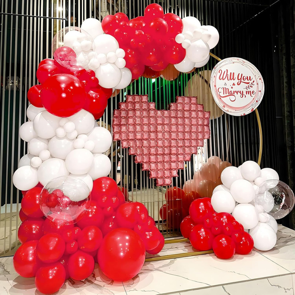 Kit Balões 155 Peças Decoração Festa De Aniversário Base Bexiga Vermelho e Branco Guirlanda Arco Desconstruído + Fita
