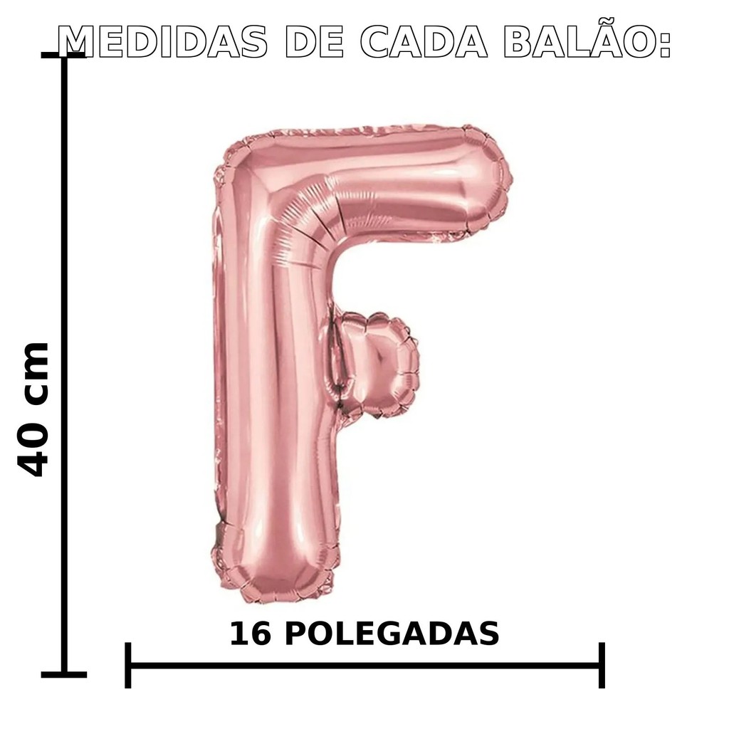 Kit Balão Metalizado Despedida de Solteira FUTURA NOIVA ITENS QUE ACOMPANHAM NO KIT: Balões FUTURA NOIVA em ouro rosê Embalagem com 11 Letras Cor: Rose Gold Material: Folha Metalizada Medidas Aproximadas: LETRAS: 40cm - 16 POLEGADAS Kit de Balões ideal para decoração de Festas de Despedidas de Solteira, Chás de Cozinha, Chás de Lingerie e demais eventos temáticos ENVIO RÁPIDO!