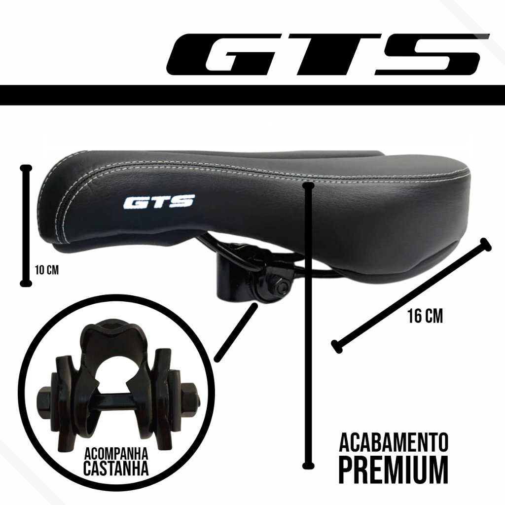 Kit Banco Selim Bike Bicicleta MTB Vazado Confortável Couro GTS + Manopla GTS