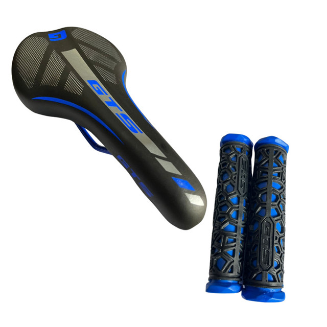 Kit Banco Selim Gts Bicicleta Mtb Speed Preto/Azul + Manopla Bike Preto Azul