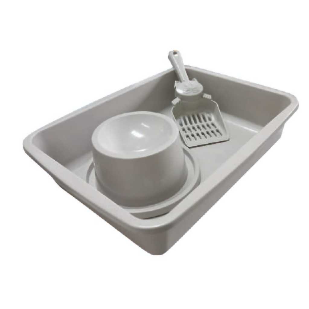 KIT BANDEJA CAIXA DE AREIA PARA GATOS CAT C/ PAZINHA + COMEDOURO POSTURA CORRETA