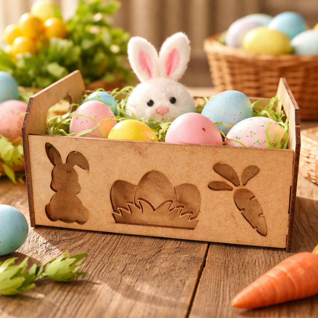 Kit Bandeja Caixote Pascoa 15x10 Coelho Festa Cesta Presente