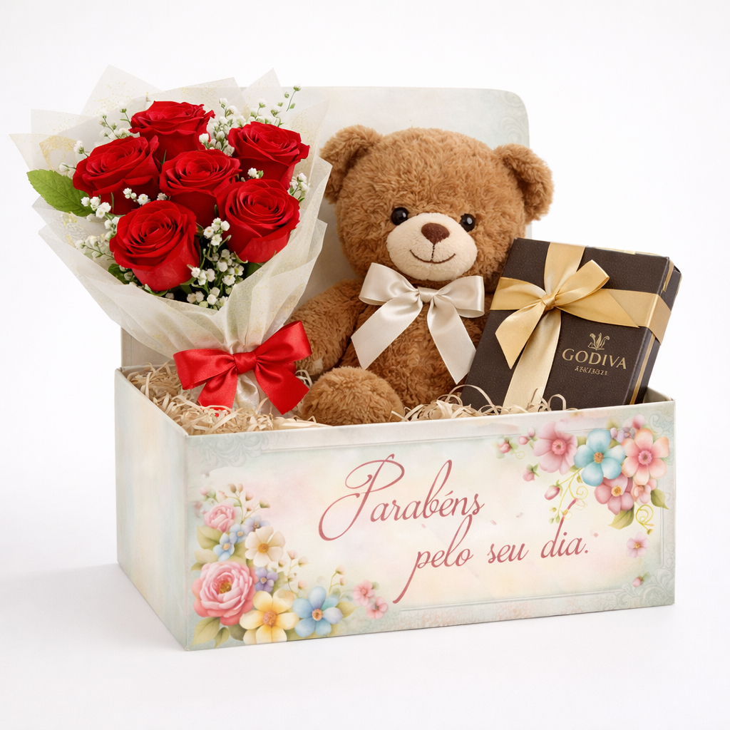Caixa Display P 📦 Opções de compra – varejo ou atacado: ✔ 1 unidade ✔ Kit com 5 unidades ✔ Kit com 10 unidades 💫 Detalhes do produto: - Medidas individuais: 21 x 14 x 9 cm - Fácil de montar ⚠ ATENÇÃO - Este anúncio refere-se somente à caixa display vazia - Os itens exibidos nas imagens (pelúcia, flores, chocolates e acessórios) não acompanham o produto - Não realizamos personalização (nome, frase, estampa ou alteração no design) 🎁 Indicado para: - Floriculturas e Lojas de presentes - Datas comemorativas (Dia dos Namorados, aniversários, datas românticas) - Montagem de kits presente e cestas