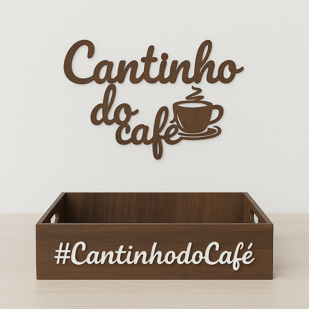 Kit bandeja e plaquinha cantinho do café em mdf 3 mm Marrom, preto, Colorido