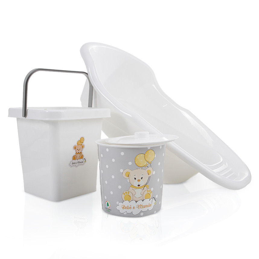 Kit Banheira Bebê com Balde e Lixeira – Estampa Ursinho