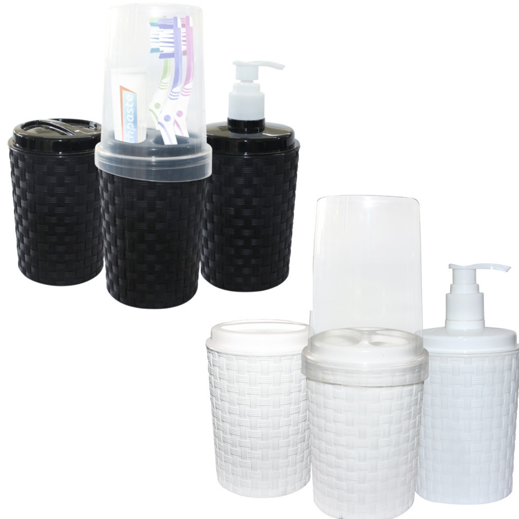 Kit Banheiro 3 peças Plástico Porta Sabonete Líquido Escova de Dente e Algodão/Cotonete
