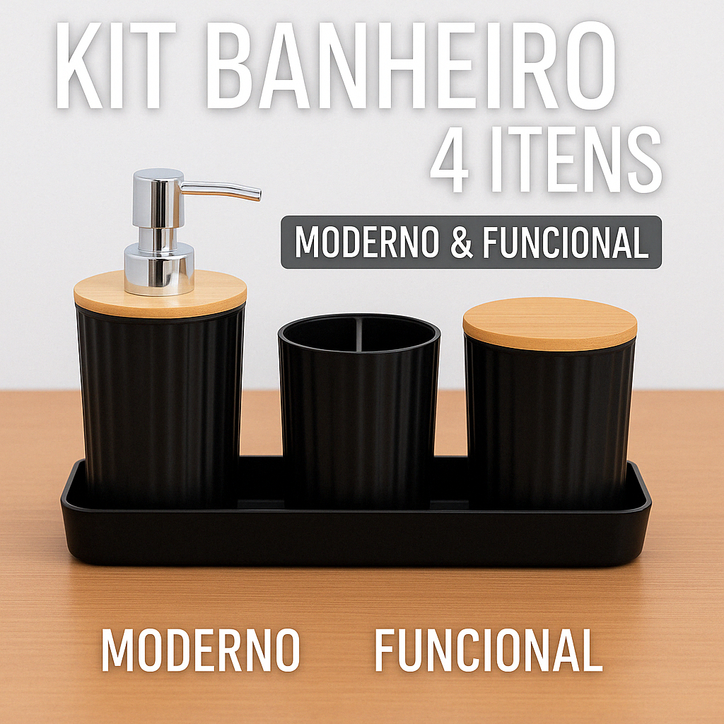 🛁 DEIXE SEU BANHEIRO MAIS BONITO E ORGANIZADO! Eleve o visual do seu banheiro com este conjunto completo e sofisticado, ideal para quem busca praticidade sem abrir mão do estilo. Com acabamento fosco e detalhes em bambu, ele traz um toque moderno e natural ao ambiente. ✅ O kit inclui 4 peças funcionais: • 1 Dispenser para sabão líquido • 1 Porta escovas de dentes • 1 Porta acessórios (para algodão, cotonetes, escovas etc) • 1 Base organizadora 🎨 **Escolha sua cor preferida: • Preto – elegante e contemporâneo • Branco – clean e minimalista • Cinza – neutro e versátil 🌿 Design que une o moderno ao natural com detalhes em bambu 🧼 Material durável, fácil de limpar e resistente à umidade 📐 Perfeito para banheiros, lavabos, suítes e ambientes corporativos 🎁 Também é uma excelente opção de presente decorativo e útil! 📦 Conteúdo da embalagem: Kit com 4 peças conforme descrição acima