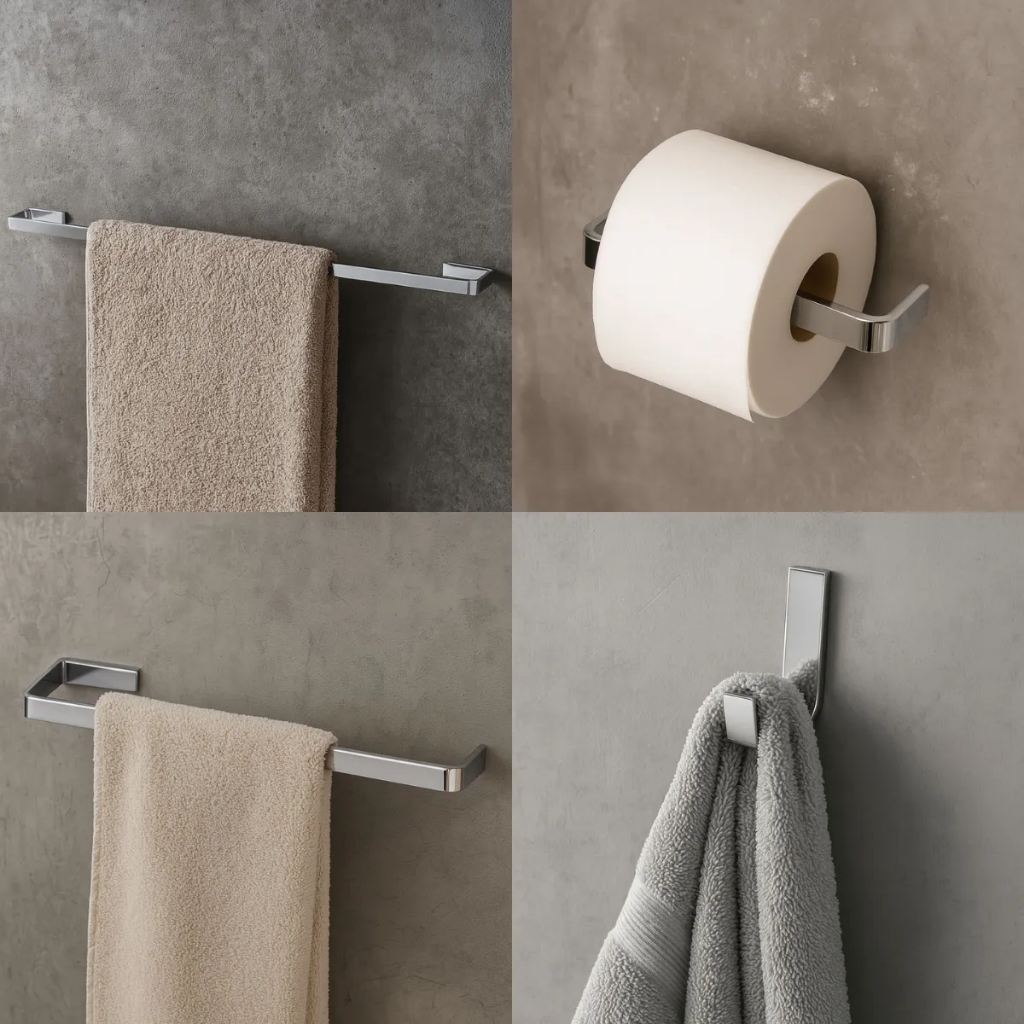 Kit Acessórios para Banheiro Completo 4 Peças Quadrado Premium em Inox e Alumínio Cromado Luxo DESCRIÇÃO Elegância e brilho para seu banheiro. Fabricado em inox e alumínio de alta resistência, ideal para ambientes úmidos. Design quadrado moderno com acabamento cromado de alto brilho. ITENS INCLUSOS 1 Porta Toalha Barra 1 Porta Toalha Rosto 1 Porta Papel Higiênico 1 Cabide (Parafusos e buchas para instalaçao inlusos) MEDIDAS Porta Toalha Barra – 40cm comprimento x 7cm profundidade Porta Toalha Rosto – 20cm comprimento x 7cm profundidade Porta Papel Higiênico – 14cm comprimento x 7cm profundidade Cabide – 5cm x 5cm ESPECIFICAÇÕES TÉCNICAS Material: Inox e Alumínio Cor: Cromado Modelo: Quadrado Fixação: Parafusos Resistente à umidade Fácil instalação Envio rápido com proteção reforçada.