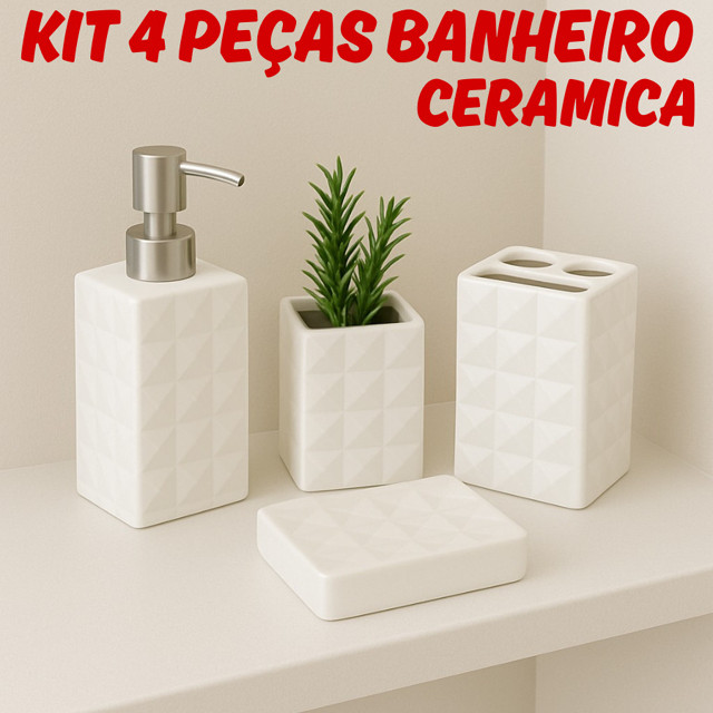| Kit Banheiro 4 Peças Textura Diamante Ceramica Porta Escova Dente P... este produto | R$ 49,92 | 28% | 4.9/5 | 111 |