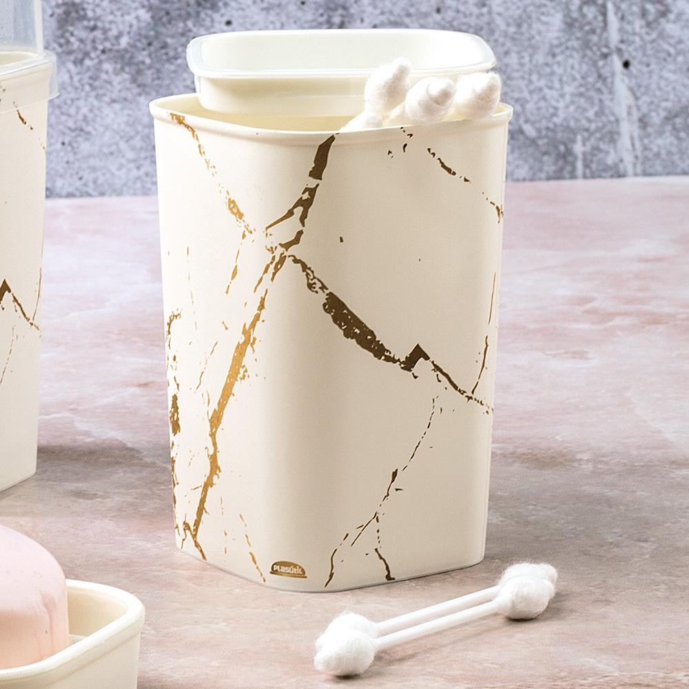 Kit Banheiro Classic Marmore 5 Peças Dimensao: (Comp x Larg x Alt): 35,0x20,5x17,5 cm Kit composto por 5 peças: 1 Lixeira 4,6 L 1 Dental Case 1 Porta Algodão 1 Saboneteira 1 Porta Sabonete liquido - O acabamento fosco atualiza a decoração dos produtos para seu banheiro ou lavabo. - Uma das grandes tendências do segmento de moda para casa é a aplicação do mármore para decoração de produtos. As ambientações ficam super sofisticadas. - A lixeira possui tampa abre e fecha e abertura nas duas laterais superiores do cesto. Quando a "sacolinha" for colocada, as alças podem ficar escondidas nessa repartição. - Linha coordenada: com vários produtos para você compor seu ambiente. - Fabricado em polipropileno (PP). - Livre de bisfenol-A (BPA FREE)..