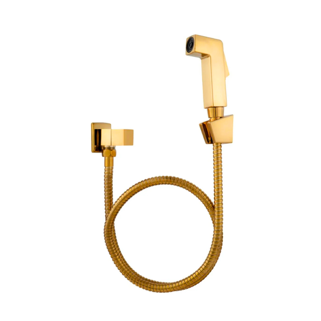 Kit Banheiro Dourado Torneira + Ducha Higiênica Chuveirinho Luxo Quadrada Metal INoxidavel