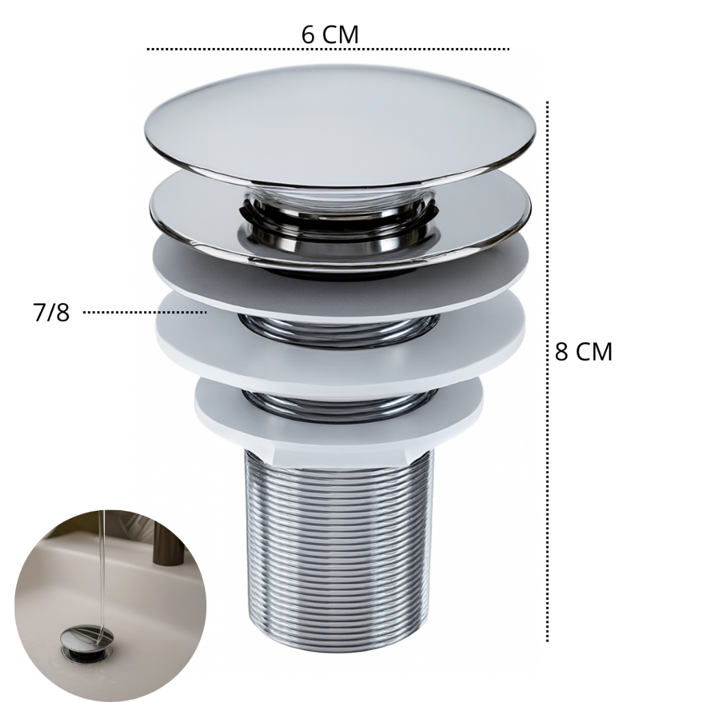 Garanta praticidade, vedação perfeita e acabamento sofisticado para seu banheiro ou lavabo com este kit completo. Desenvolvido para facilitar a instalação e oferecer durabilidade, ele reúne os principais itens para um funcionamento eficiente e visual moderno. Itens Inclusos • 01 Válvula Ralo Click 7/8 • 01 Engate Flexível 40cm • 01 Sifão Sanfonado 72cm Especificações Técnicas Válvula Ralo Click • Diâmetro: 7/8 • Sistema: Click (abre e fecha com pressão) • Função: Escoamento de água e bloqueio de odores • Acabamento: Cromado • Material: ABS Engate Flexível • Comprimento: 40 cm • Rosca: Padrão universal • Aplicação: Ligação hidráulica • Material: Malha trançada • Acabamento: Cromado Sifão Sanfonado • Comprimento: Ajustável até 72 cm • Modelo: Sanfonado • Função: Escoamento e vedação contra mau cheiro • Material: Polipropileno (ABS) • Acabamento: Cromado Sistema Click Inteligente Anti-Odor A válvula ralo click 7/8 permite abrir e fechar com um simples toque, evitando o retorno de odores desagradáveis e proporcionando mais higiene ao ambiente. Vedação Segura e Sem Vazamentos O sifão sanfonado 72cm garante excelente vedação, prevenindo infiltrações e protegendo contra mau cheiro vindo do esgoto. Instalação Fácil e Universal Componentes compatíveis com a maioria das cubas e lavatórios padrão, facilitando a montagem sem necessidade de adaptações. Alta Durabilidade e Resistência Acabamento cromado de qualidade, resistente à corrosão, umidade e ao uso diário, mantendo o brilho por muito mais tempo. Visual Moderno e Acabamento Profissional Ideal para banheiros e lavabos residenciais ou comerciais, oferecendo um toque elegante e funcional em um único kit.