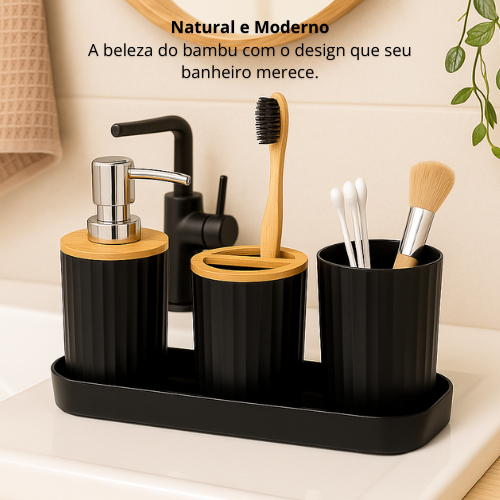 KIT BANHEIRO/LAVABO 4 PEÇAS (Preto ou Branco) Transforme seu banheiro ou lavabo com este Kit 4 Peças moderno e funcional! Feito em plástico PP de alta qualidade com detalhes naturais em bambu, ele traz elegância, organização e praticidade para o dia a dia. ✨ Itens Inclusos (4 peças): 1 Dispenser para sabonete líquido – 350 ml | 7,3 cm 1 Porta Escovas – 7,3 cm 1 Copo – 7,3 cm 1 Bandeja Organizadora – 16 cm 🎨 Variações de cor: Preto Branco 🧴 Material: Plástico PP Detalhes em Bambu ⭐ Destaques do Produto: Design elegante e minimalista Ideal para banheiro, lavabo e áreas de uso pessoal Fácil de limpar e resistente Mantém tudo organizado e com toque natural kit banheiro kit lavabo conjunto banheiro porta escova de dentes porta escova porta sabonete saboneteira dispenser sabonete líquido dispenser líquido porta escova de cabelo organizador de banheiro kit acessório banheiro kit higiene banheiro conjunto organizador kit pia banheiro acessórios para banheiro kit completo banheiro organizador lavabo porta shampoo e sabonete kit banheiro moderno conjunto higiene kit decor banheiro banheiro organizado kit utilidades banheiro kit para banheiro com porta escova e saboneteira conjunto de banheiro com dispenser de sabonete kit lavabo com dispenser e porta escova kit banheiro decorativo moderno conjunto organizador para pia do banheiro kit banheiro completo 4 peças porta escova e porta sabonete conjunto kit de higiene para banheiro lavabo bandeja decorativa bandeja banheiro bandeja lavabo kit banheiro tampa de bambu tampa de bambu decoração kit lavabo bambu kit lavabo com bandeja