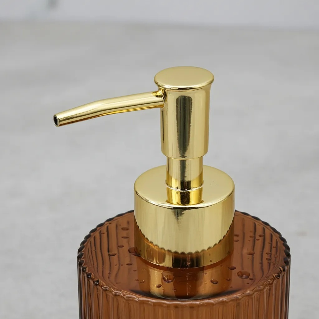 Kit Banheiro Lavabo Lumin 3 Peças Vidro Âmbar Canelado Detalhe Dourado