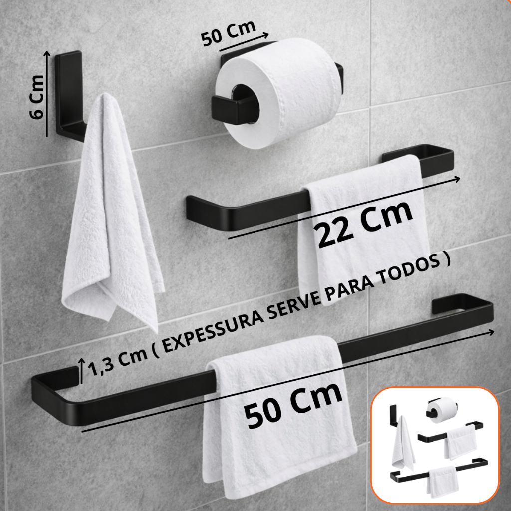 🖤 KIT BANHEIRO PRETO FOSCO COMPLETO – LUXO E MODERNIDADE Transforme seu banheiro com um kit completo preto fosco, moderno, elegante e resistente. Ideal para quem busca sofisticação, durabilidade e excelente custo-benefício em um único anúncio. Produto com acabamento premium, design contemporâneo e alta resistência à umidade. 📦 O QUE VEM NO KIT: ✔ 1 Torneira de Banheiro Preto Fosco ✔ 1 Kit Acessórios 4 Peças Preto ✔ 1 Sifão Preto ✔ 1 Engate Flexível 40cm ✔ 1 Válvula para Lavatório ✔ 1 Kit Acabamento de Registro ✔ 1 Válvula de Descarga Kit completo para deixar seu banheiro padronizado e elegante. 🛠 DETALHES DOS PRODUTOS 🔹 Torneira para Lavatório Acabamento preto fosco moderno Sistema 1/4 de volta Fácil instalação Alta durabilidade Ideal para banheiro residencial ou comercial 🔹 Kit Acessórios 4 Peças Porta toalha Toalheiro barra Papeleira Gancho Design minimalista e sofisticado 🔹 Sifão Preto Ajustável Fácil instalação Vedação eficiente Visual moderno combinando com a torneira 🔹 Engate Flexível 40cm Alta resistência Conexão segura Ideal para instalação da torneira 🔹 Válvula para Lavatório Excelente vedação Compatível com lavatórios padrão 🔹 Acabamento de Registro Design moderno Combina perfeitamente com o kit 🔹 Válvula de Descarga Acabamento preto Resistência e durabilidade ✨ DIFERENCIAIS DO KIT ✔ Visual 100% preto fosco ✔ Banheiro padronizado e elegante ✔ Ótimo custo-benefício ✔ Fácil instalação ✔ Produto resistente à umidade ✔ Ideal para reformas ou construções 🚚 ENVIO RÁPIDO Produto bem embalado e envio imediato após confirmação da compra.