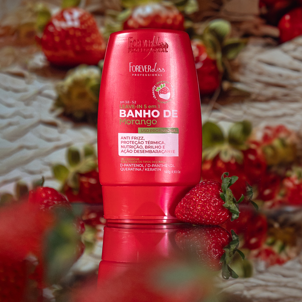 O poderoso Kit Banho de Verniz Morango Brilho Extremo Forever Liss possui fórmula composta por ativos naturais como o Morango, D’Pantenol e Queratina que promovem hidratação, extrabrilho, deixando os cabelos macios e sedosos. O kit Banho de Verniz Morango mantém a cor iluminada e protegida por muito mais tempo, ainda deixa um cheirinho suave e super gostoso de morango! O kit é composto por Shampoo, Máscara e Leave-in, um tratamento completo que limpa, repara e recupera a vivacidade de todos os tipos de cabelos, em especial aos opacos, secos e danificados. Um verdadeiro spa de maciez e luminosidade! Indicação: Todos os tipos de cabelo, especialmente os opacos, secos e danificados. Modo de uso: 01. Comece a lavagem com o Shampoo Banho de Verniz Morango, massageando a primeira vez para retirar resíduos que não permitem a completa formação da espuma. 02. Enxágue e repita a aplicação do Shampoo Banho de Verniz Morango, fazendo movimentos circulares suaves com as pontas dos dedos no couro cabeludo. Aguarde cerca de 3 minutos para que o produto possa penetrar nos cabelos. 03. Enxágue bastante até remover completamente o shampoo. 04. Após lavar, retire o excesso de água e aplique a Máscara Banho de Verniz Morango nos fios ainda úmidos, espalhando em todo o comprimento. 05. Enluve mecha a mecha. 06. Deixe agir por 10 minutos. 07. Enxágue os cabelos e retire o excesso de água. 08. Coloque uma quantidade adequada do Leave-in Banho de Verniz Morango na palma da mão e aplique sobre os cabelos úmidos. 09. Massageie mecha a mecha ou penteie os cabelos. Sem enxágue. 10. Finalize como desejar. Contém: 01 - Shampoo Banho de Verniz Morango 500ml 01 - Máscara Banho de Verniz Morango 1Kg 01 - Leave-in Banho de Verniz Morango 140g Precauções: Uso externo adulto. Manter fora do alcance de crianças e animais domésticos. Caso entre em contato acidental com os olhos, lavar com água. Ao menor sinal de irritação suspenda o uso e havendo persistência dos sintomas, procure orientação médica. Não reutilizar a embalagem para outros fins. Principais Dúvidas: 01. Qual o pH do Kit Banho de Verniz Morango Forever Liss? R. O pH do shampoo é de 4,5 - 5,5 - Máscara 3,8 - 5,2 - Leave-in 3,8 - 5,2. 02. Gestantes, lactantes e crianças podem utilizar o Kit Banho de Verniz Morango Forever Liss? R. Sim. Não há contraindicação de uso para os produtos desse kit. 03. Quem tem progressiva pode utilizar o Kit Banho de Verniz Morango Forever Liss? R. Sim. Os produtos desse kit são compatíveis com todos os tipos de química. 04. Em qual etapa do Cronograma se encaixa a Máscara Banho de Verniz Morango? R. A Máscara Banho de Verniz Morango se encaixa na etapa de hidratação no Cronograma Capilar. 05. Qual é a frequência de uso da Máscara Banho de Verniz Morango Forever Liss? R. Essa máscara pode ser utilizada até duas vezes na semana. 06. É melhor utilizar o Leave-in Banho de Verniz Morango no cabelo seco ou úmido? R. O leave-in deve ser utilizado sempre nos cabelos úmidos. 07. O Leave-in Banho de Verniz Morango é sem enxágue? R. Sim. Não é necessário enxaguar o cabelo após sua utilização. 08. Posso utilizar o Leave-in Banho de Verniz Morango antes do secador ou chapinha? R. Sim. Inclusive esse produto oferece proteção térmica para evitar os danos causados pelo calor.