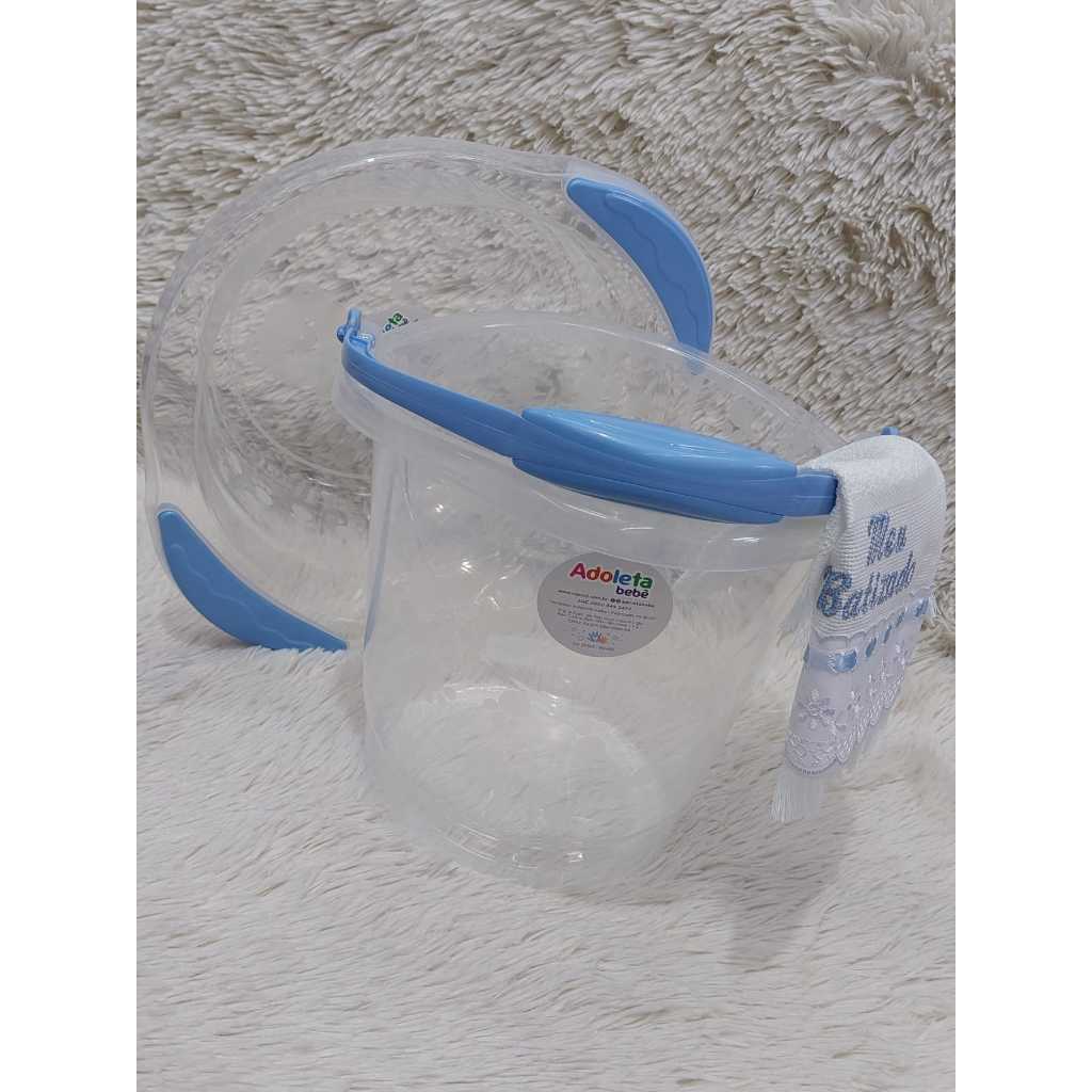 Kit Banho Infantil Azul Adoleta | Bacia 6L + Balde 8L | Ideal para banho e lavagem de roupinhas