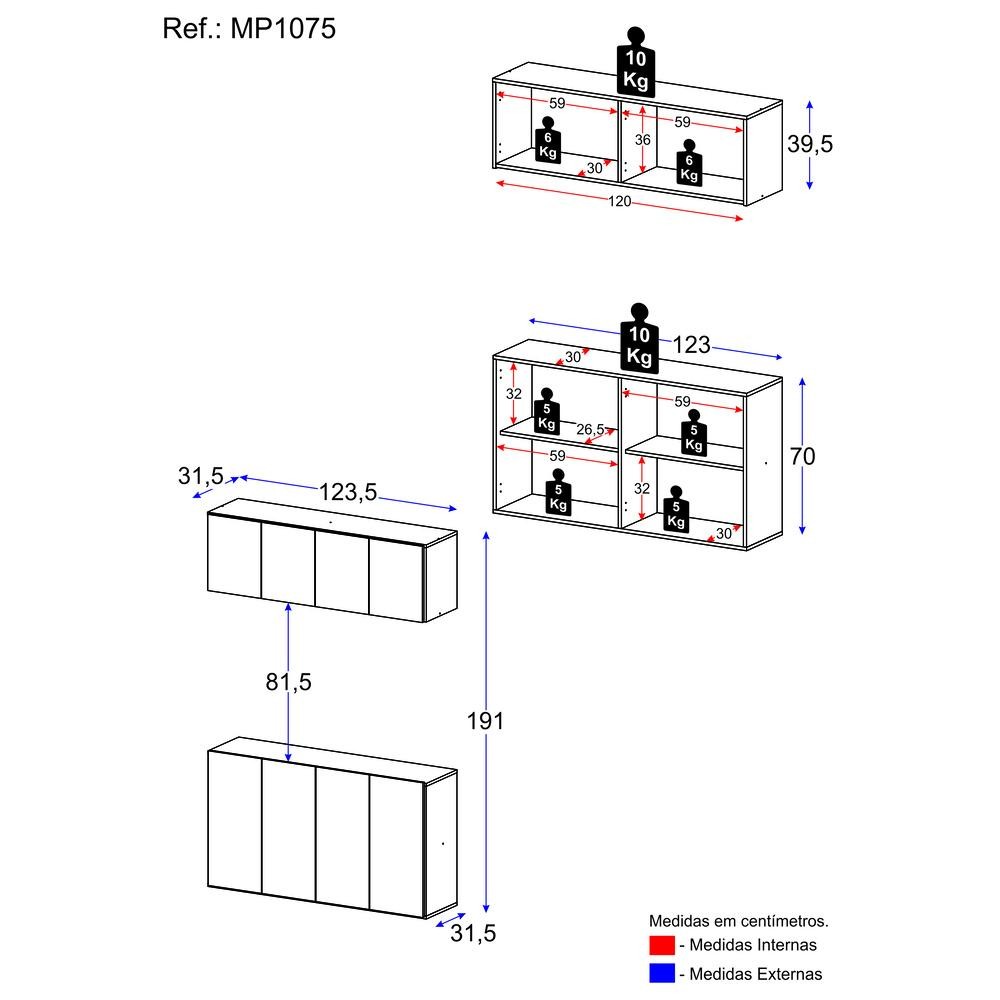 Receba seus convidados com estilo e sofisticação com o Kit Bar Armário Aéreo e Aparador 4 Portas Multimóveis MP1075. Fabricado em MDP com acabamento acetinado (cerca de 20% de brilho), garante durabilidade e resistência. Composto por um aparador com quatro portas e prateleiras e um armário aéreo também com quatro portas, oferece amplo espaço interno para organizar bebidas, copos e outros itens de bar. Seu design clean proporciona um visual moderno e bonito. Por ser suspenso, otimiza o espaço e facilita a limpeza do ambiente. Conteúdo da Embalagem: 1 (um) Aparador 1 (um) Armário Aéreo Manual de Montagem Kit Ferragem Dimensões do produto montado: Armário Aéreo - Altura: 39,5cm | Largura: 123,5cm | Profundidade: 31,5cm Aparador - Altura: 70cm | Largura: 123cm | Profundidade: 31,5cm *Você pode consultar as medidas detalhadas na imagem técnica do produto. *As cores do produto podem sofrer variações de tonalidade de acordo com as configurações do seu dispositivo. Imagem meramente ilustrativa. Decoração não acompanha o produto. O produto será entregue desmontado e não disponibilizamos o serviço de montagem.