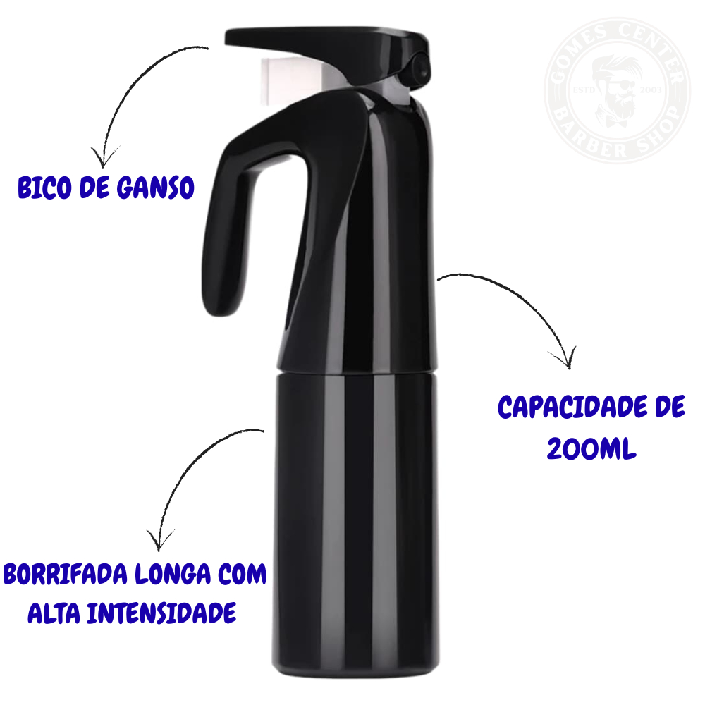 Kit Barbeiro Espanador de Madeira + Borrifador Preto Spray Névoa Contínua 200ml