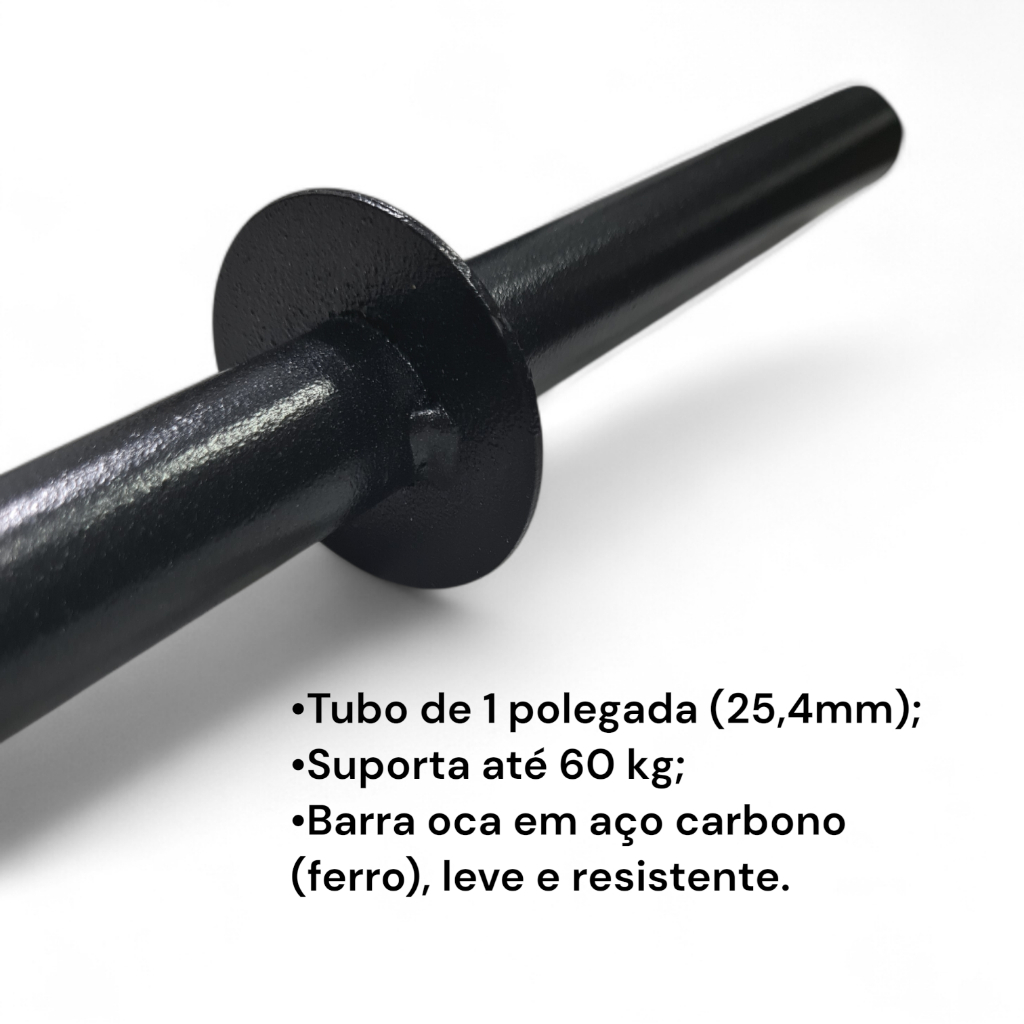 Composto por barras resistentes e ergonômicas, este kit é ideal para treinos funcionais, musculação e Cross training. Fabricadas em aço carbono, material com alta resistência e capacidade para suportar cargas com segurança, firmeza e durabilidade no seu dia a dia. * Itens inclusos: ● 1 barra pump 1,20m: ideal para treinamento funcional ou de força; muito utilizada para agachamentos, supino, remada. ● 1 barra de mão halter 40 cm: indicado para treinos unilateral isolado. * CADA BARRA SUPORTA ATÉ 60 KG. *TUBO DAS BARRAS SÃO DE 1 POLEGADA DE DIAMETRO (25,5mm). As barras acompanham presilhas para fixação de pesos. PESOS NÃO INCLUSOS.