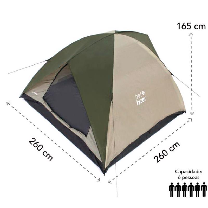 Barraca Camping Araguaia Alta Premium Cobertura para 6 Pessoas BEL A nova linha de barracas Araguaia BEL conta agora com mais tamanhos. Uma barraca leve, prática, e muito fácil de montar. Ela conta com uma tela mosquiteiro que, além de ajudar a evitar insetos comuns nas regiões de rios, lagos e praias, também melhora a ventilação no interior da barraca, garantindo uma noite segura e tranquila para que todos possam aproveitar melhor os seus passeios. Atenção: A barraca possuí coluna de água mas não é impermeável. Suportando apenas breves chuviscos e serenos. INFORMAÇÕES: Paredes e teto em poliéster Piso reforçado em PE (Polietileno) Estrutura alta com varetas em fibra de vidro Volume de coluna d’água: 1.000 mm Cobertura reforçada com costura selada Contém 01 janela com tela mosquiteiro Versátil e resistente DADOS TÉCNICOS: Sacola P/ Transporte: Sim Cobertura: Poliéster, PE (Polietileno) Fechamento: Zíper Estrutura: Fibra de Vidro Coluna D`Água: 1.000 mm Capacidade: 06 Pessoas Cor: Verde e Cinza Modelo: Araguaia Dimensões aproximadas montado (C x L x A): 260 cm x 260 cm x 165 cm Material: Tecido, Poliester Código de Fábrica: 101902 Marca: BEL Garantia: 3 meses * Imagens meramente ilustrativas. + Colchão Inflável de Solteiro 185 X 76 X 22 CM 110000 BEL Colchão de ar super leve, prático, fácil de transportar e de armazenar. Acompanha kit com adesivo para reparo Características técnicas: - Tipo: Solteiro - Medidas: 185 X 76 X 22 cm - Medidas da caixa: 11 x 20 x 20 cm - Peso: 1,7 kg Garantia: 3 meses Referência: Barraca: 101902 Colchão inflável: 110000 Marca: BEL * Imagens meramente ilustrativas
