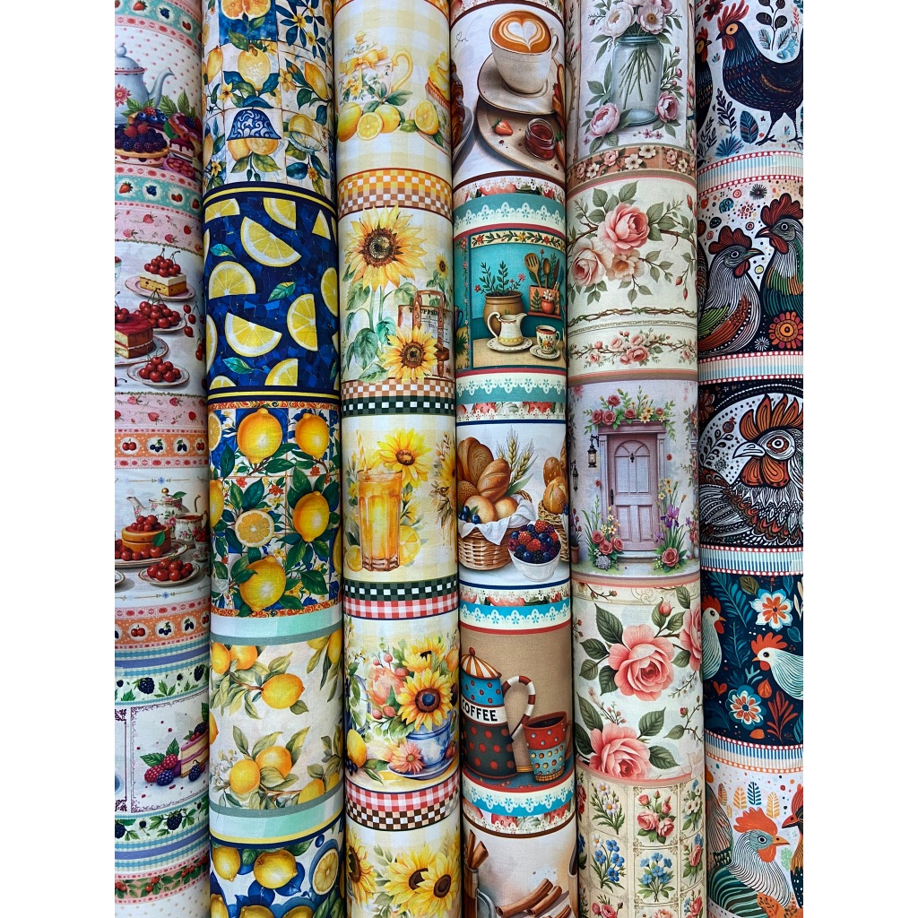 Kit Barrados 5 Faixas Tecido Tricoline Digital 100% Algodão Faixas para Pano de Prato Peripan
