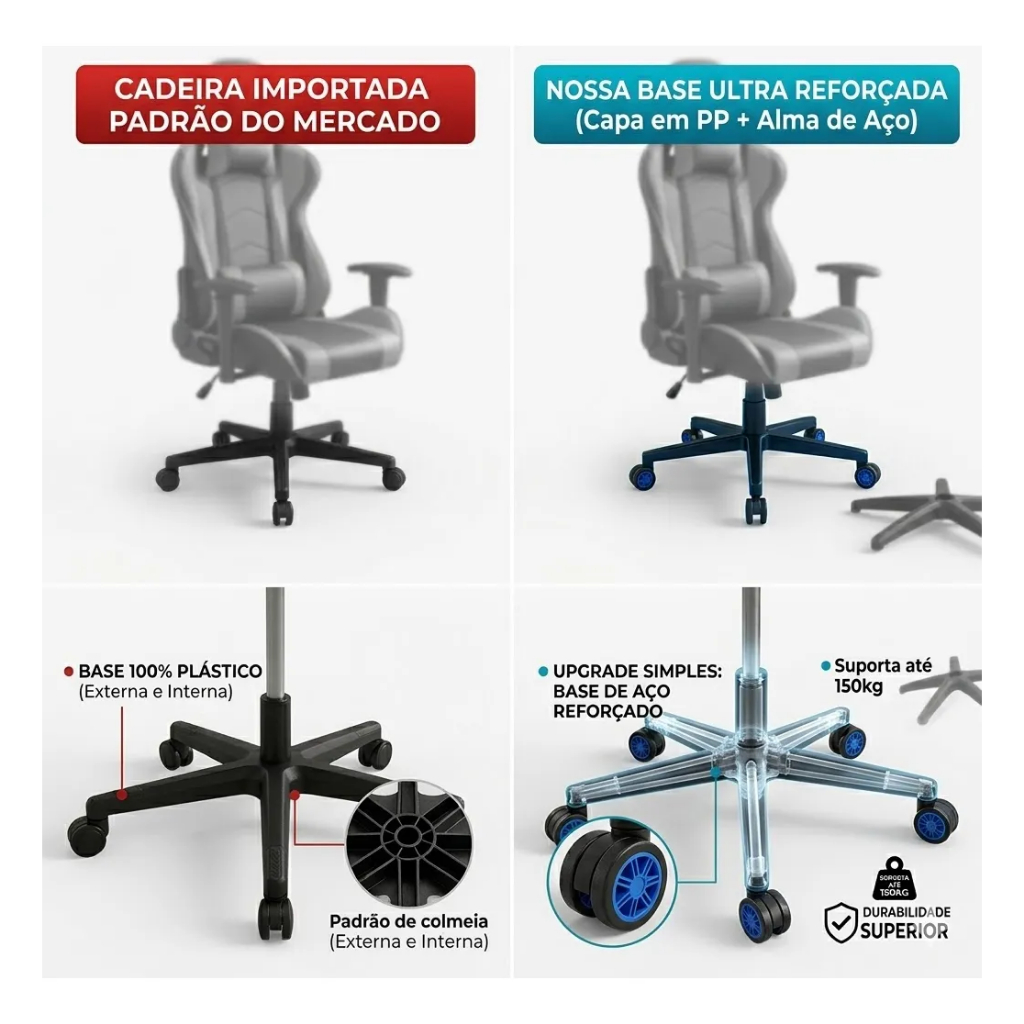 | Kit Base Cadeira Gamer Premium 150kg – Base Estrela Reforçada + 5 R... este produto | R$ 174,90 | 24% | 4.9/5 | — |
