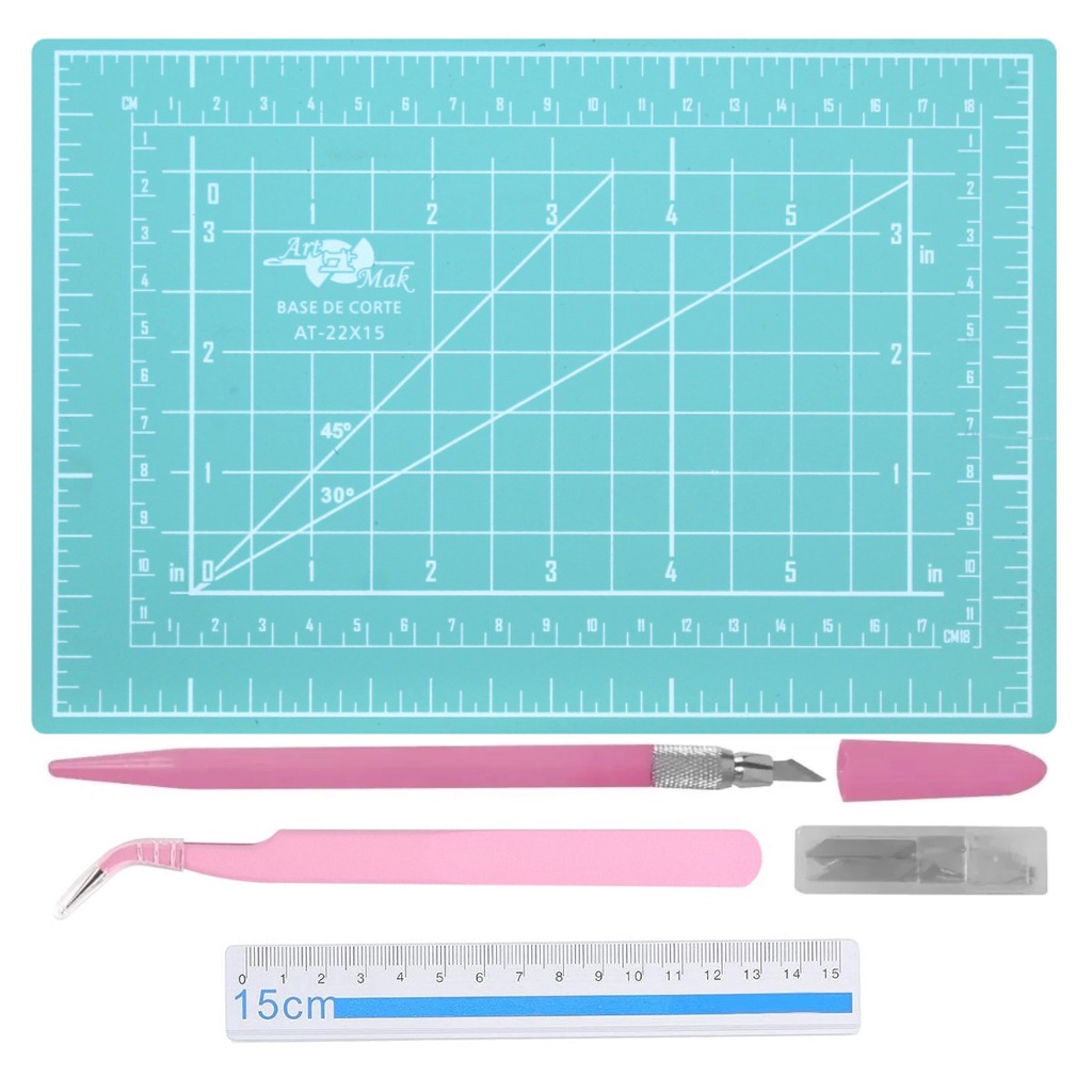 Kit Base de Corte A5 + Régua 15cm + Estilete de Precisão + Pinça Curva