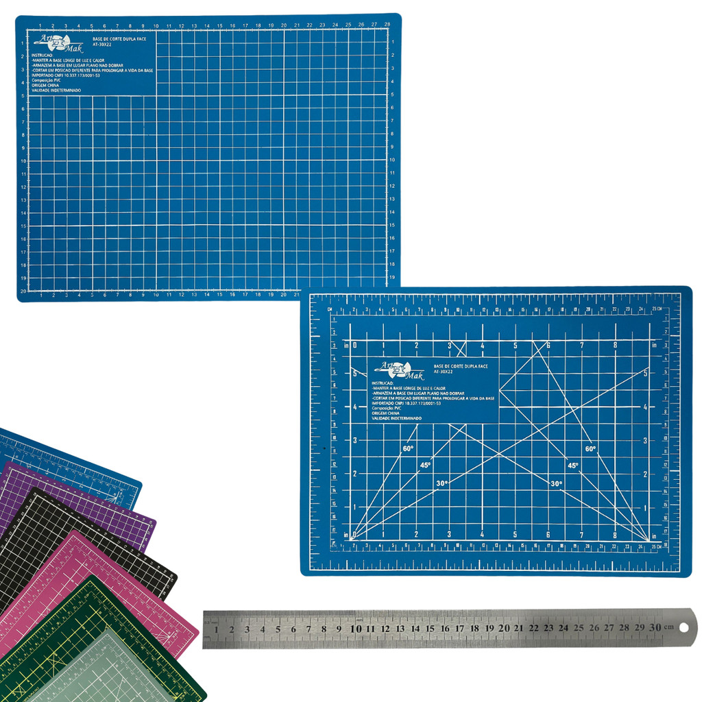 Kit Base de Corte Dupla Face A4 30cm x 22cm Regua Inox 30cm Artesanato Patchwork Scrapbook Desenho
