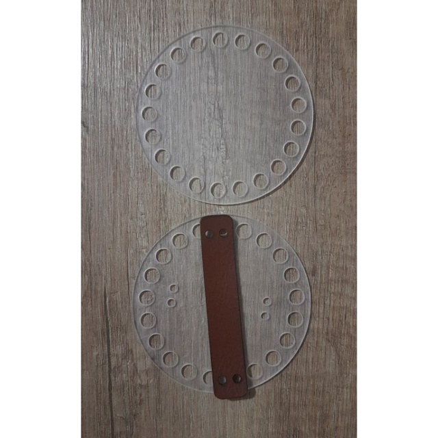 Kit base e tampa 10 cm acrilico 2mm com alça de sintético para crochê (2000000000139)