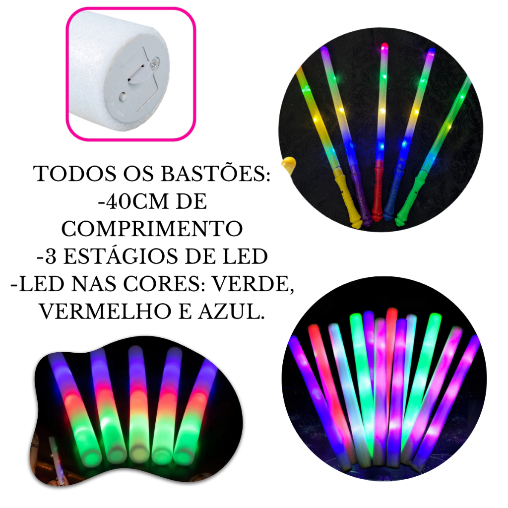 Kit Bastão Led Festa 20 unidades Neon Espuma Plástico Balada Formatura Casamentos 2/5/10/20