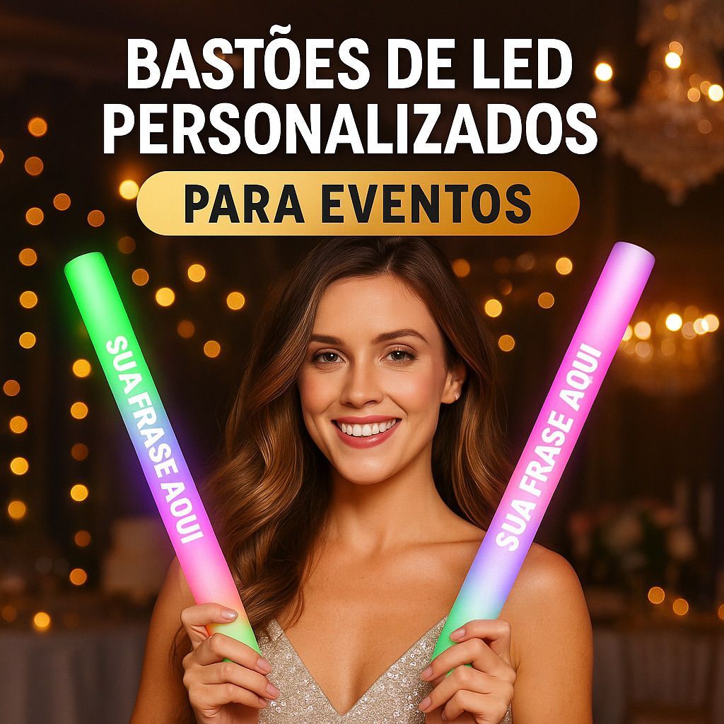 Bastão LED personalizado com frase para festas, casamentos, formaturas e 15 anos, disponível em kits de 10 a 40 unidades. Ideal como lembrança luminosa para eventos, com efeito LED chamativo e personalização feita sob medida para sua comemoração. ⚠️ INFORMAÇÕES IMPORTANTES — LEIA COM ATENÇÃO Após a compra, entre em contato pelo chat da Shopee para informar a frase e a fonte desejada. Produto com envio a partir do Brasil, garantindo agilidade na entrega. A personalização é feita em adesivo vinil, que deve ser aplicado pelo comprador. Recomendamos aplicar o adesivo mais próximo da data do evento. ✨ SOBRE O PRODUTO Os bastões de LED são produzidos em espuma leve e resistente, oferecendo segurança, conforto no manuseio e excelente efeito visual. São ideais para criar um ambiente animado, com iluminação marcante que valoriza fotos e vídeos do evento. 💡 CARACTERÍSTICAS Iluminação em LED com múltiplos modos de pisca Bastão de espuma macia e leve Produto personalizado com frase Baterias já inclusas Fácil de usar: basta ativar o botão (possui 3 modos diferentes de piscar) 📐 ESPECIFICAÇÕES Comprimento: aproximadamente 39 cm Material: espuma com componentes eletrônicos Personalização: adesivo vinil para ser aplicado em uma face do bastão 🎉 INDICADO PARA Festas de 15 anos Casamentos Formaturas e colações de grau Aniversários Shows, baladas e eventos noturnos Ações promocionais e comemorações especiais 📦 PRONTO PARA USAR Todos nosos bastões são enviados testados e embalados individualmente. O produto acompanha baterias já instaladas e está disponível para envio imediato. Uma solução prática, impactante e personalizada para tornar seu evento ainda mais especial. FESTMIX DISTRIBUIDORA® Todos os direitos reservados.