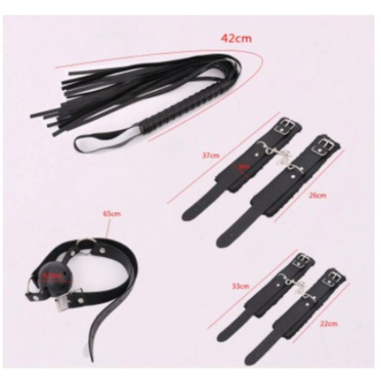 Kit BDSM 10 Peças Couro Bondage Fetiche Dominação Submissão Sado Mordaça Algema Chicote Coleira Gag Ball