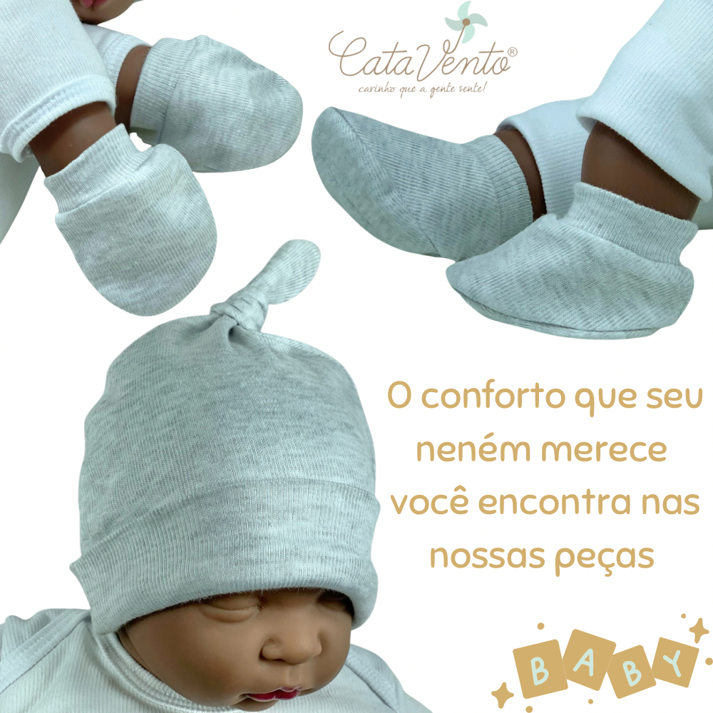 Kit Enxoval para Bebê RN – 4 Toucas, 4 Pares de Sapatinhos e 4 Pares de Luvas – Enxovais Catavento Ofereça ao seu bebê conforto, proteção e delicadeza desde os primeiros dias de vida com este Kit Enxoval para Recém-Nascido da Enxovais Catavento. Produzido com tecido canelado de alta qualidade, esse conjunto foi pensado para garantir o máximo de aconchego ao seu pequeno. Além de um design charmoso, conta com costura perfeita e acabamento impecável, ideal para a pele sensível do bebê. O que acompanha o kit? 👶 4 Toucas – Modelagem com amarração na parte superior, garantindo um ajuste confortável e seguro. Para meninas: 1 touca rosa + 1 off-white + 1 cinza ou marrom claro + 1 branca. Para meninos: 1 touca azul + 1 off-white + 1 cinza ou marrom claro + 1 branca. 🧤 4 Pares de Luvas – Mantêm as mãozinhas quentinhas e evitam arranhões. Para meninas: 1 par rosa + 1 off-white + 1 cinza ou marrom claro + 1 branco. Para meninos: 1 par azul + 1 off-white + 1 cinza ou marrom claro + 1 branco. 🧦 4 Pares de Sapatinhos – Protegem e aquecem os pezinhos do bebê. Para meninas: 1 par rosa + 1 off-white + 1 cinza ou marrom claro + 1 branco. Para meninos: 1 par azul + 1 off-white + 1 cinza ou marrom claro + 1 branco. Detalhes do Produto: ✔ Material: Tecido canelado premium, macio, respirável e perfeito para a pele delicada do bebê. ✔ Tamanho: Recém-nascido (RN), ideal para os primeiros dias de vida. ✔ Cores: Opções para meninas e meninos, com tons suaves e elegantes. ✔ Acabamento: Costura perfeita e excelente durabilidade. ✔ Marca: Enxovais Catavento, referência em qualidade e conforto para bebês. Por que escolher este kit? ✅ Conjunto completo e essencial para o enxoval do bebê. ✅ Tecido de alta qualidade, garantindo maciez e aconchego. ✅ Mantém o bebê protegido e quentinho nos primeiros dias de vida. ✅ Ótima opção de presente para futuras mamães e papais. **Indicado do 0 aos 3 meses** 💖 Adquira agora o seu Kit Enxoval da Enxovais Catavento e proporcione o melhor para o seu bebê! 💖