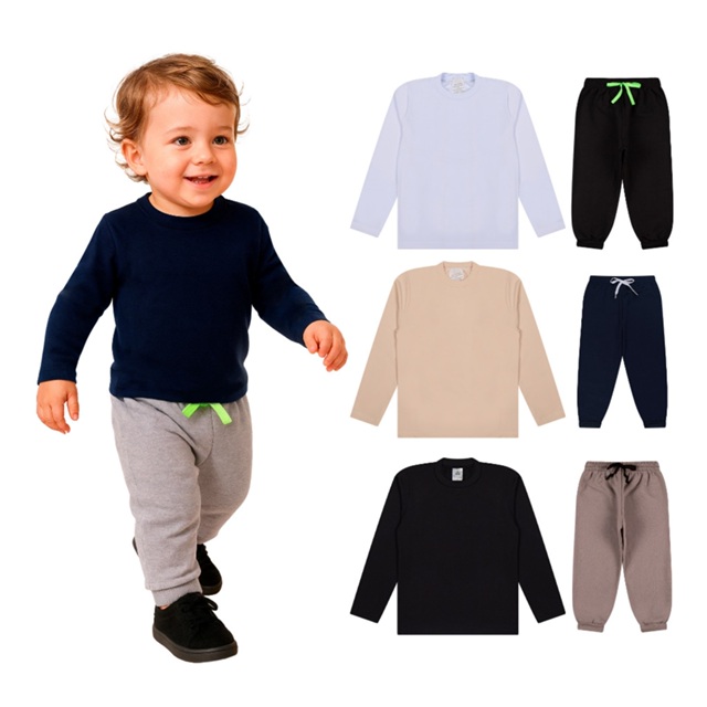 Kit Bebe 2, 4 ou 8 Peças Conjunto Blusa Térmica Manga longa e Calça Moletom Menino Meia Estação Masculino Bebê para Frio
