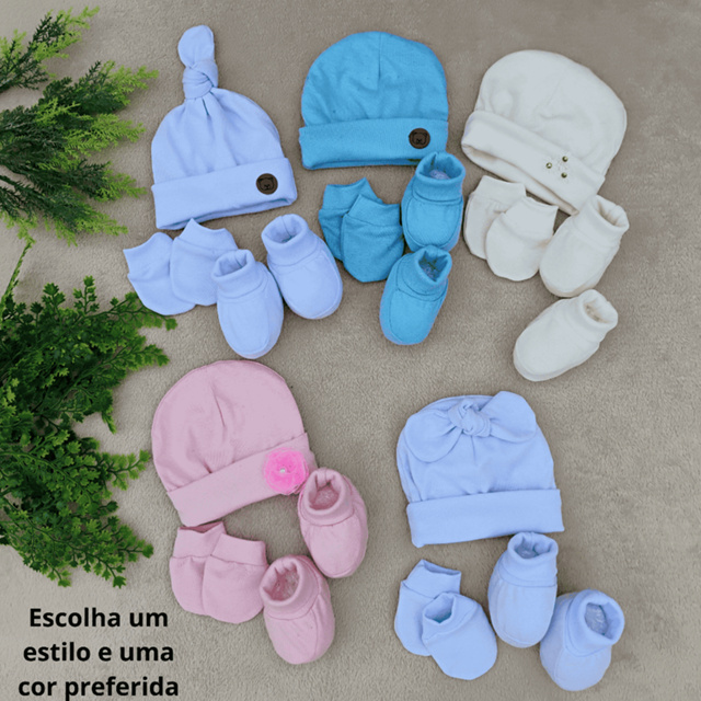 Kit Bebe Touca Luva Sapatinho Recem Nascido Saida Maternidade Pantufa Botinha Gorro