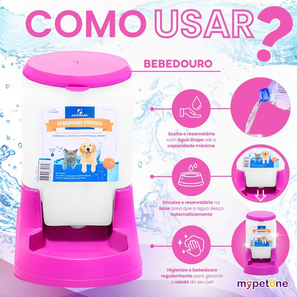 Bebedouro + Comedouro Prático Alvorada Pet 3 Litros Bebedouro Pratico Alvorada 3 Litros Garanta água fresca e disponível por muito mais tempo com o Bebedouro Prático Alvorada pet 3 Litros. Ideal para cães e gatos de todos os portes, ele oferece praticidade, economia e bem-estar para o seu pet — mesmo nos dias mais quentes ou quando você estiver fora por algumas horas. Fabricado com materiais resistentes e duráveis, o Bebedouro Alvorada possui sistema de abastecimento por gravidade, garantindo fluxo contínuo de água, sempre que o pet precisar. Por que escolher o Bebedouro Alvorada Pet 3 Litros: - Capacidade de 3 Litros: Ideal para manter seu pet hidratado por muito mais tempo, com menos necessidade de reabastecimento - Sistema por Gravidade: Mantém a tigela sempre abastecida automaticamente, sem desperdício - Base Estável e Segura: Evita tombamentos, mesmo com pets agitados - Fácil de Higienizar: Componentes removíveis que facilitam a limpeza diária- Transparente e Funcional: Permite acompanhar o nível da água com facilidade Especificações Técnicas: - Capacidade: 3 Litros - Cores: Preto, Azul, Vermelho. Rosa Dimensões Aproximadas: - Altura: 22,5 cm - Base: 27 cm Material: - Reservatório em plástico translúcido de alta resistência - Base em polipropileno atóxico e livre de BPA Comedouro Prático Alvorada Pet 3 Litros Mais praticidade e higiene para a alimentação do seu pet com o Comedouro Prático Alvorada Pet 3 Litros. Ideal para cães e gatos de todos os portes, ele possui capacidade generosa e estrutura resistente, garantindo refeições sempre organizadas e acessíveis para o seu animal de estimação. Seu sistema de alimentação por gravidade permite que o compartimento inferior esteja sempre abastecido com ração, oferecendo autonomia e conforto mesmo quando você estiver fora por algumas horas. Por que escolher o Comedouro Alvorada 3 Litros: - Capacidade de 3 Litros: Armazena uma boa quantidade de ração seca, reduzindo a frequência de reabastecimento - Sistema por Gravidade: Mantém o recipiente sempre cheio conforme o pet consome a ração - Base Estável e Antiderrapante: Mais segurança na hora da alimentação - Fácil de Higienizar: Peças removíveis que facilitam a limpeza do dia a dia - Transparente e Funcional: Permite visualizar facilmente o nível de ração disponível Especificações Técnicas: - Capacidade: 3 Litros - Cores: Azul, Rosa, Preto, Vermelho Dimensões Aproximadas: - Altura: 22,5 cm - Base: 27 cm Material: - Reservatório em plástico translúcido de alta resistência - Base em polipropileno atóxico e livre de BPA Com o Kit Comedouro + Bebedouro Prático Alvorada pet 3L, seu pet se mantém sempre hidratado e bem Alimentado com muito mais autonomia e praticidade para você. Uma escolha inteligente para o dia a dia!
