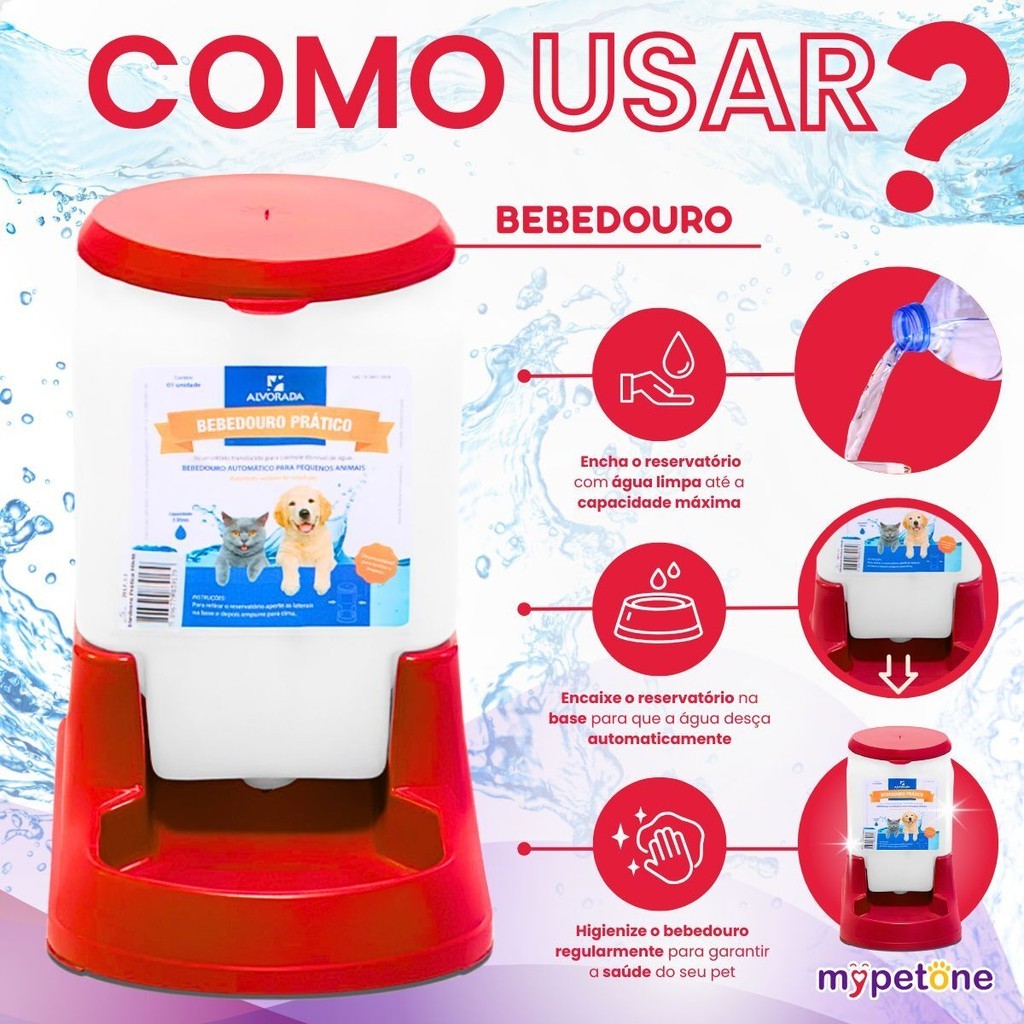 Kit Bebedouro e Comedouro Automatico Cachorro Gato e Prático 3 litros - Alvorada Vermelho