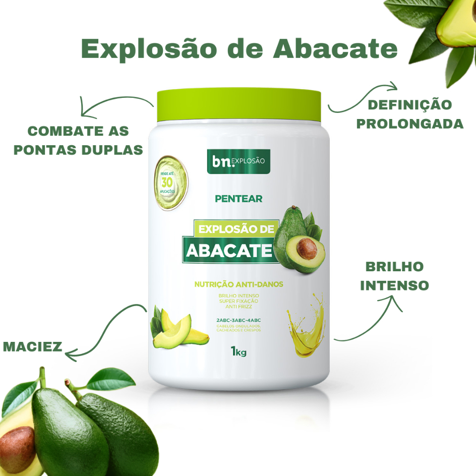 Kit Beleza Natural Pentear Café + Pentear Abacate + Gelatina Linhaça 1Kg bn.Explosão